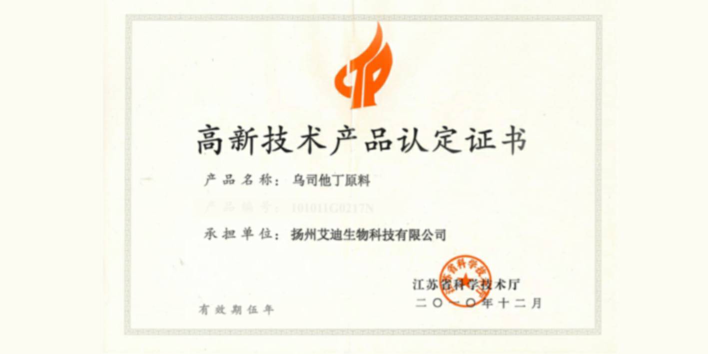 • 低血管活性物质的乌司他丁原料获得2012年江苏省高新技术产品认定