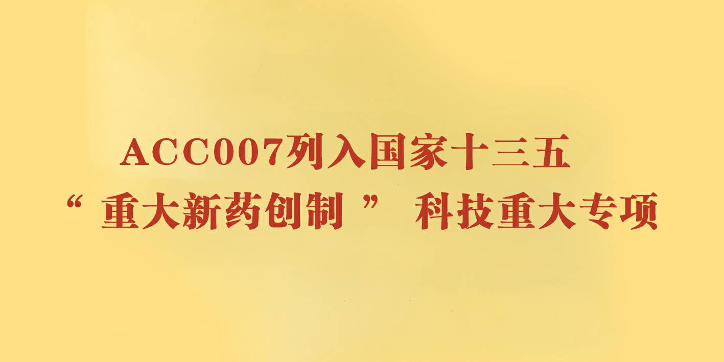 • ACC008被列入国家十三五 “ 重大新药创制 ” 科技重大专项